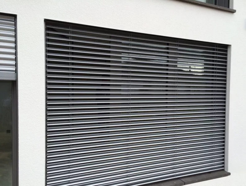 De Roma Raffstore wordt op basis van hetzelfde platformsysteem gebouwd als rolluiken. Deze nieuwe techniek staat het eenvoudig toe, optisch op een zeer aansprekende wijze, om beide bouwelementen te combineren. Rolluik (A) op de weerszijde en als inbraakbescherming alsmede Raffstore (B) op de zonzijde. Opbouwelementen van Roma getuigen van deugdelijkheid.
