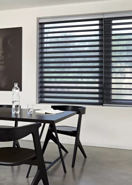 De Silhouette® Shades bieden je privacy met een mooi uitzicht naar buiten in geopende stand overdag. Wanneer je de Silhouette® Shades 's avonds volledig