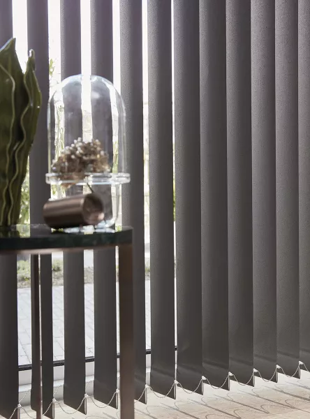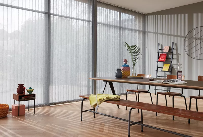 Een grootse stijl voor grote ramen,schuifdeuren en ramen in ongebruikelijke vormen – Luxaflex® Verticale Jaloezieën zorgen voor een optimale lichtregulering en privacy in elke kamer van uw huis.