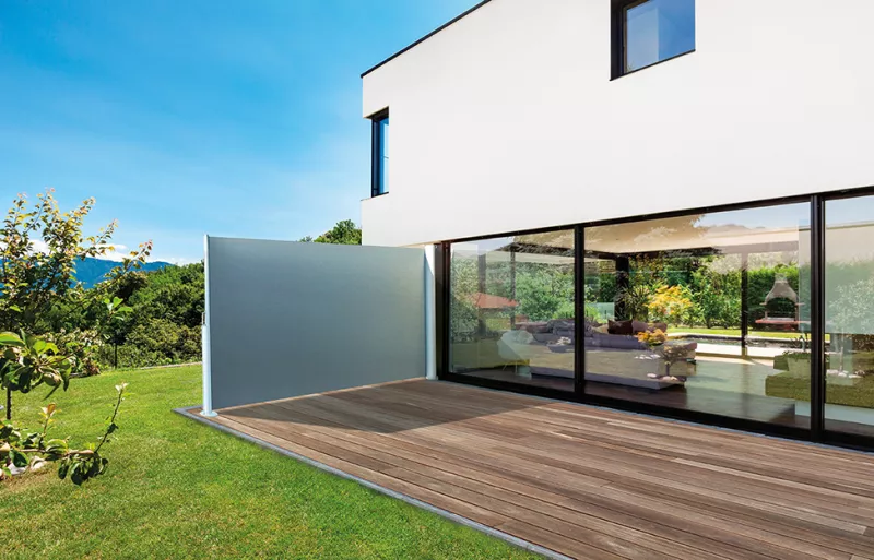 Deze zijkant vormt het ideale scherm tegen indiscrete blikken en tegen de wind. Het zorgt tevens voor wat laterale schaduw. De Windblocker is manueel te bedienen via een in de hoogte verstelbare handgreep. Het gespannen doek kan rechtstreeks aan de muur of aan een paal bevestigd worden. De geïntegreerde veer zorgt voor een optimale spanning en bevestiging van het doek. De elegante beschermingskast van het doek bestaat uit corrosiebestendig gepoederlakt geëxtrudeerd aluminium.